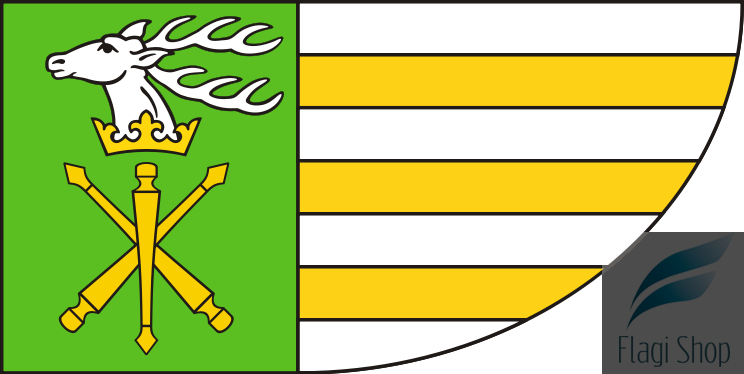 Na tej aukcji oferujemy Państwu wykonanie flagi powiatu w rozmiarze 150x90 cm z oczkami na maszt: