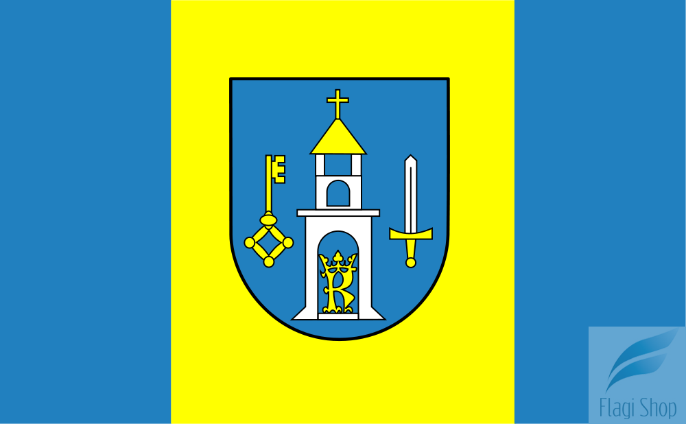 Na tej aukcji oferujemy Państwu wykonanie flagi miasta w rozmiarze 150x90 cm z oczkami na maszt: