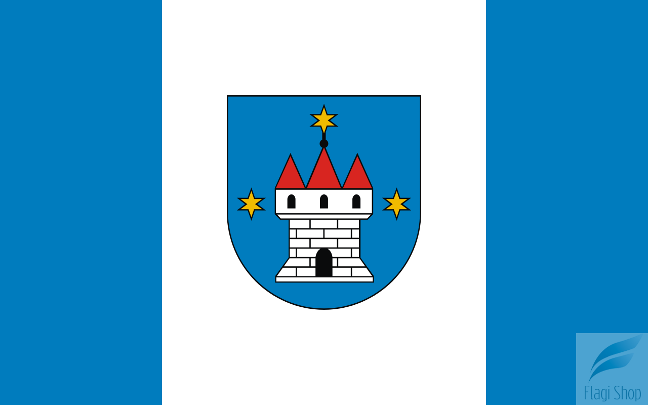 Na tej aukcji oferujemy Państwu wykonanie flagi miasta w rozmiarze 150x90 cm z oczkami na maszt:
