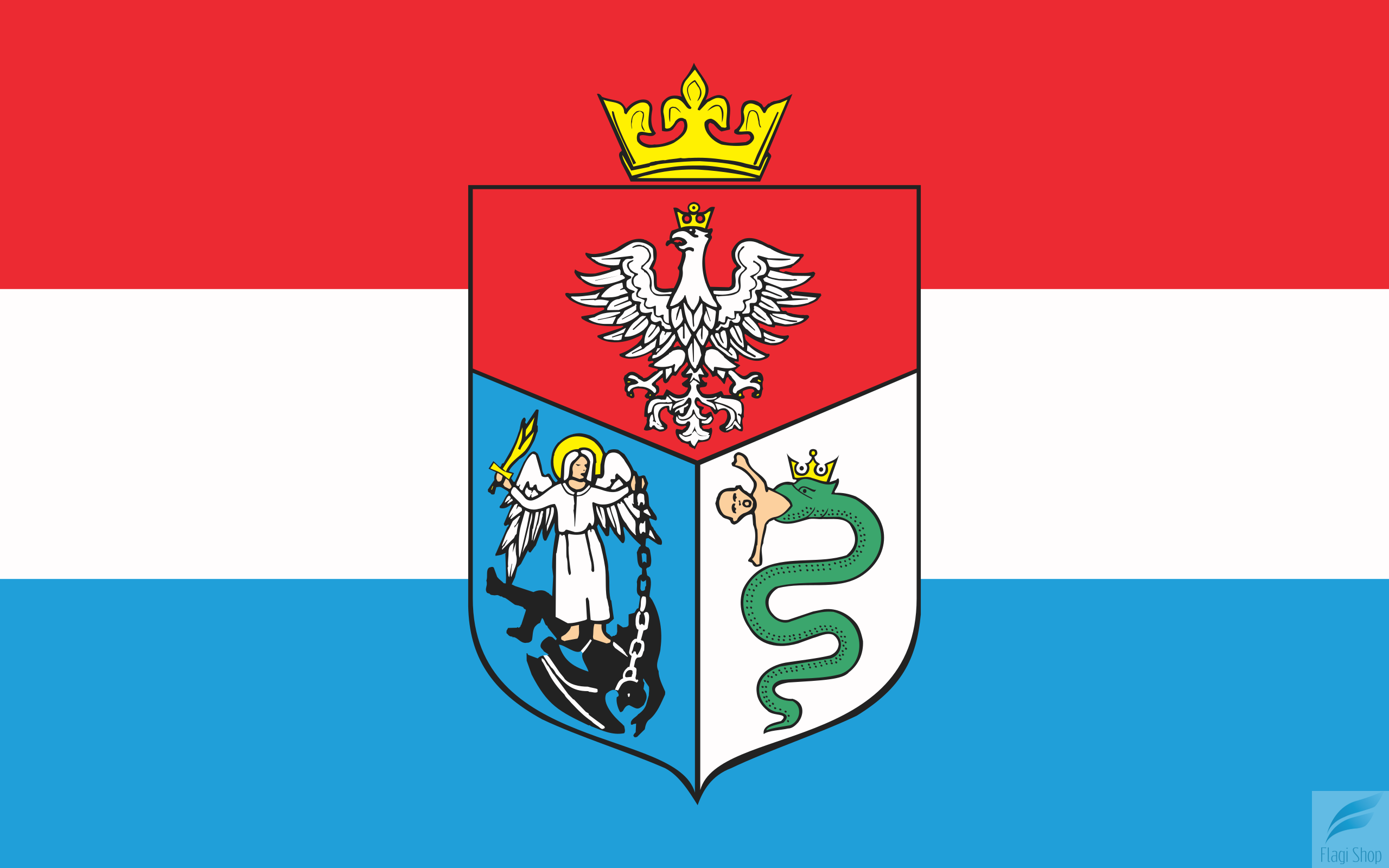 Na tej aukcji oferujemy Państwu wykonanie flagi miasta w rozmiarze 110x70 cm z tunelem na drzewiec.