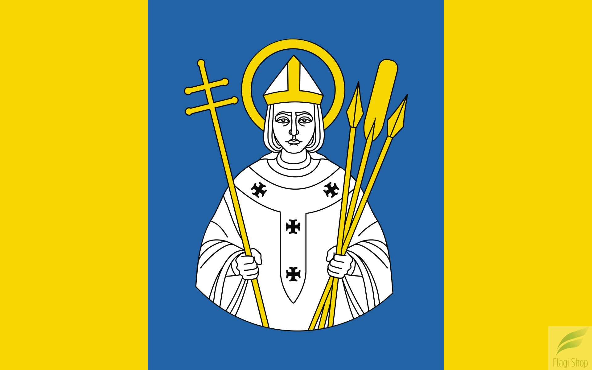 Na tej aukcji oferujemy Państwu wykonanie flagi miasta w rozmiarze 110x70 cm z tunelem na drzewiec.